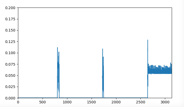 The first two pulses that you see in the graph shows the system working as described in the previous list. But in the third measurement cycle, the BG95 locks up and stops responding to AT commands and keeps using about 60mA of current constantly. After a couple of minutes, the BG95 starts responding to AT commands again, but the problem is that the battery life is greatly reduced, because it keeps using 60mA whenever it locks up.