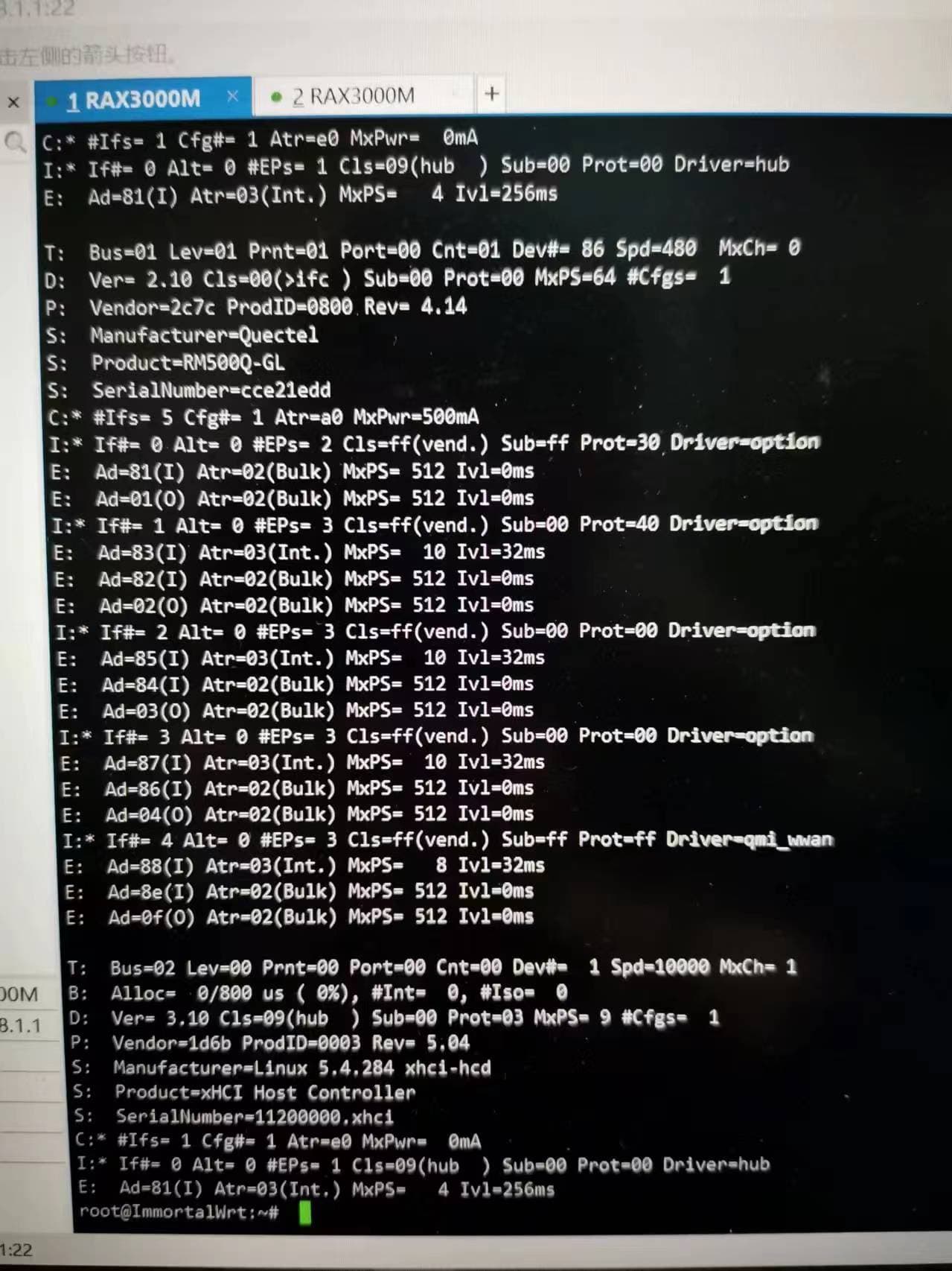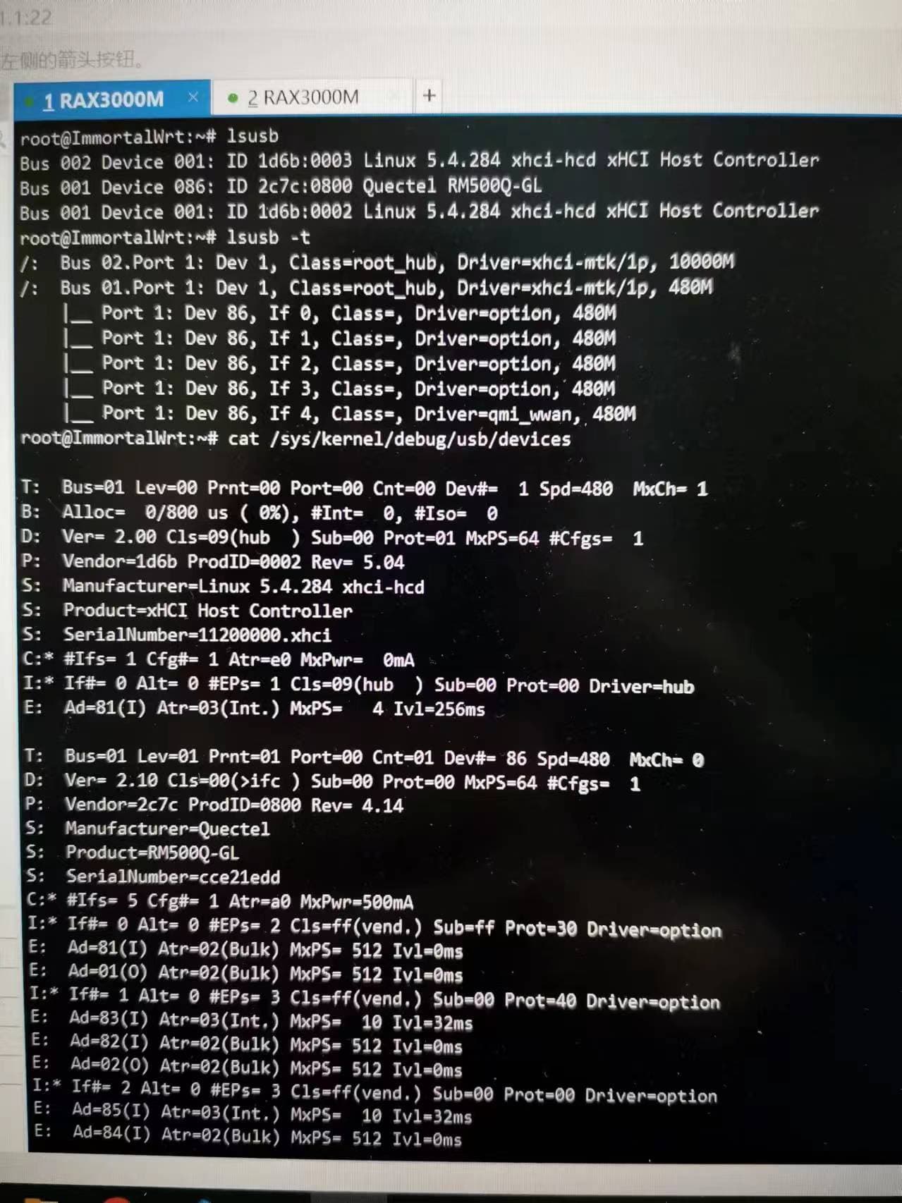 I have a RAX3000M-NAND router. I compiled the firmware of hanwckf/immortalwrt-mt798x and connected it to the RM500Q-GL 5g module via USB. After startup, the information is as follows. What should I do to dial up normally: