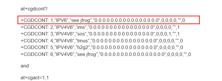 +CGDCONT: 1,“IP”,“T-Mobile”,“0.0.0.0”,0,0,0,0,“”,0