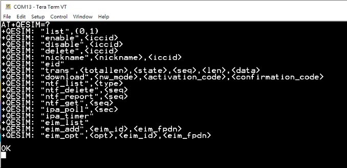 AT+QESIM=“eid”