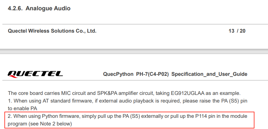 When using AT standard firmware, if external audio playback is required, please raise the PA (S5) pin