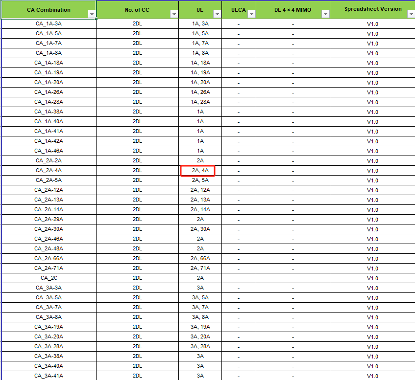 Hello, I would like to know on which bands the EM060K-GL module supports CA. Specifically, I would like to know if it has support for CA between bands 2 and 4. Many thanks.