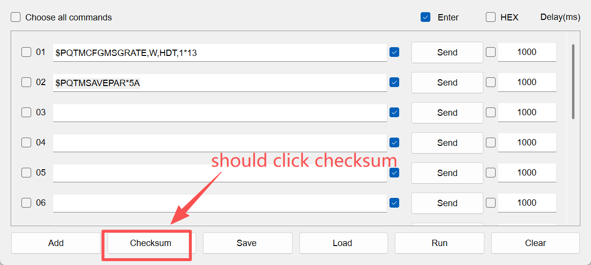 PS: I don’t understand how to get the QGNSS software to auto create the correct checksum for the commands.