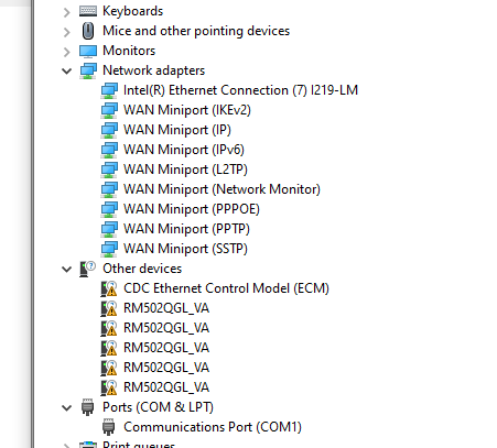 Hi. Dear Support team. I have 2 modules of Quectel one is RM502Q-GL and the other is EC200A. both the modules are detected in windows and i am unable to install complete drivers for them . i unstalled the MBIM drivers from the quectel download zone. the RM502Q installs but there are still 2 devices not installed namely the ECM adapter and one more RM502Q_VA device, the ec200a i manullay installed the drivers but the cellular internet feature in teh newtorks is not yet active. i need to cnnect to internet via the cellular connection feature of windows. please help me with the relevant files for drivers and firmwares for these devices.