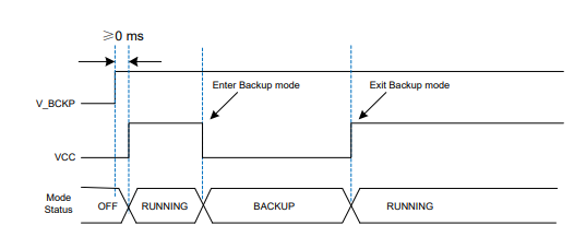 - V_BCKP remains powered at all times.