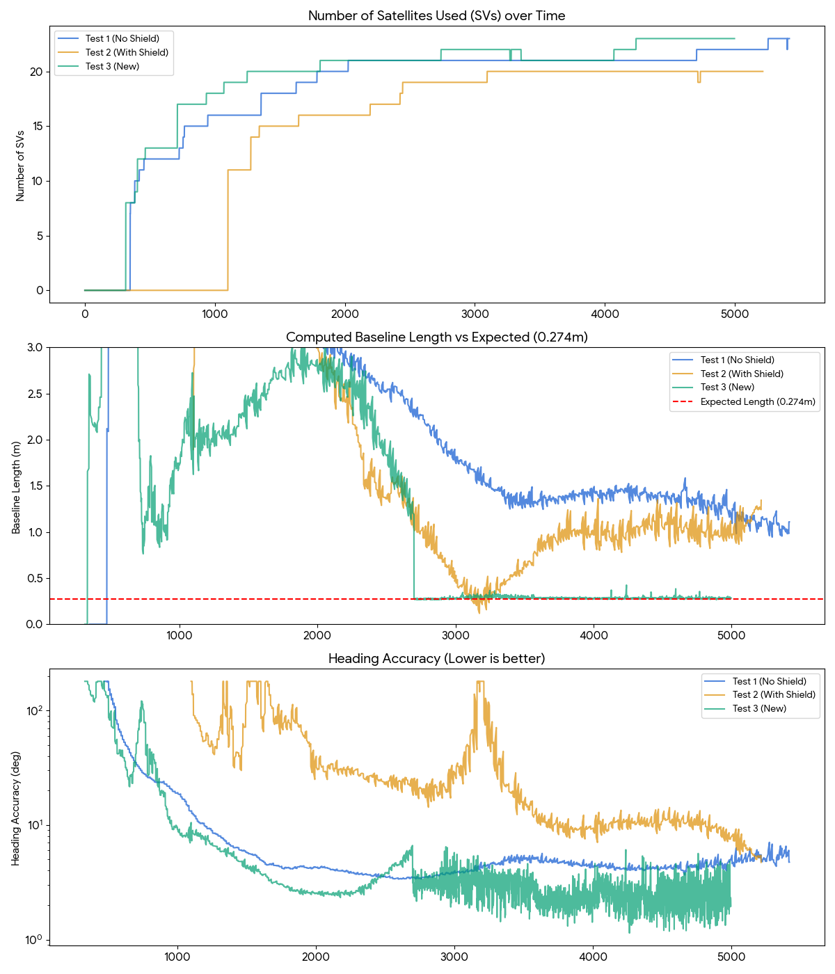 - Can the LC29HEA moving base engine reliably resolve ambiguities at baselines ≤ 30 cm? The App Note states 0.2 m minimum and shows drones/robots with short baselines. Commercial marine GNSS compasses (u-blox F9P/F9H based) work at these distances routinely.