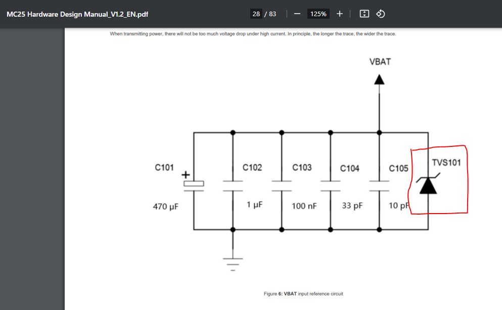 My Module is Quectel MC25, My power supply is 4.2V & 3A, Please suggest me right TVS diode (TVS101) value or part number.