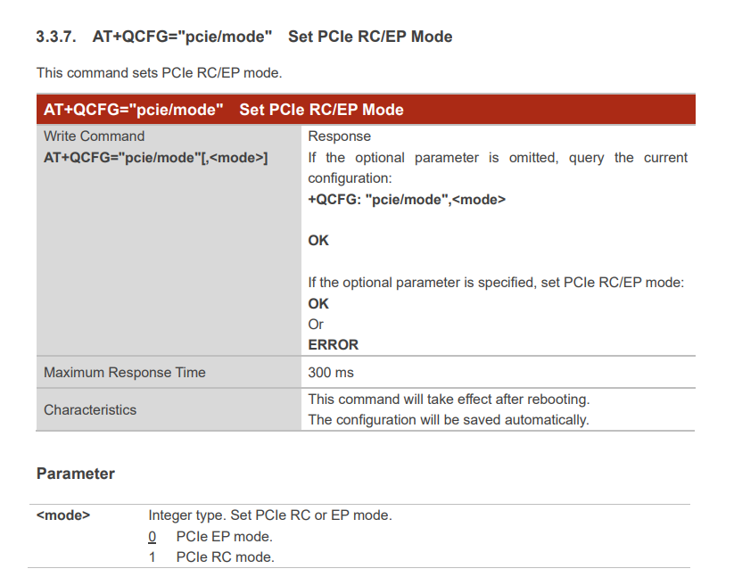 AT+QCFG=“pcie/mode”