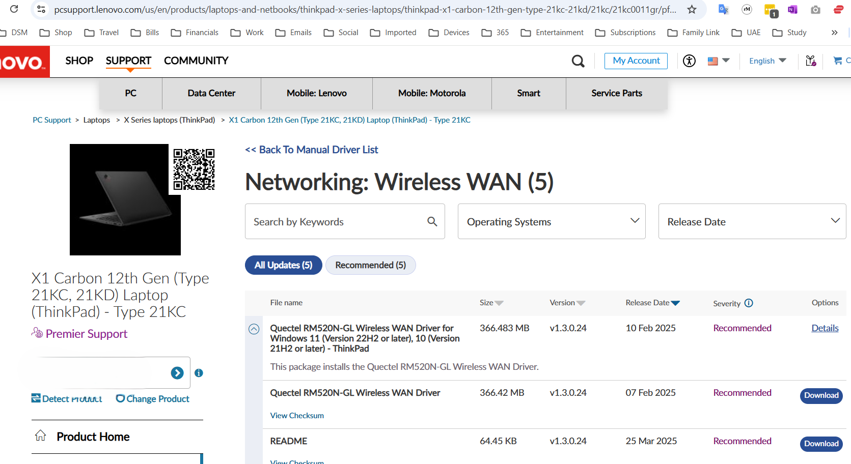 I got a new Thinkpad X1 Gen 12 one month ago. After checking with Lenovo the correct part numbers, I purchased WWAN Card model Quectel 5W11H85458 (RM520N-GL).