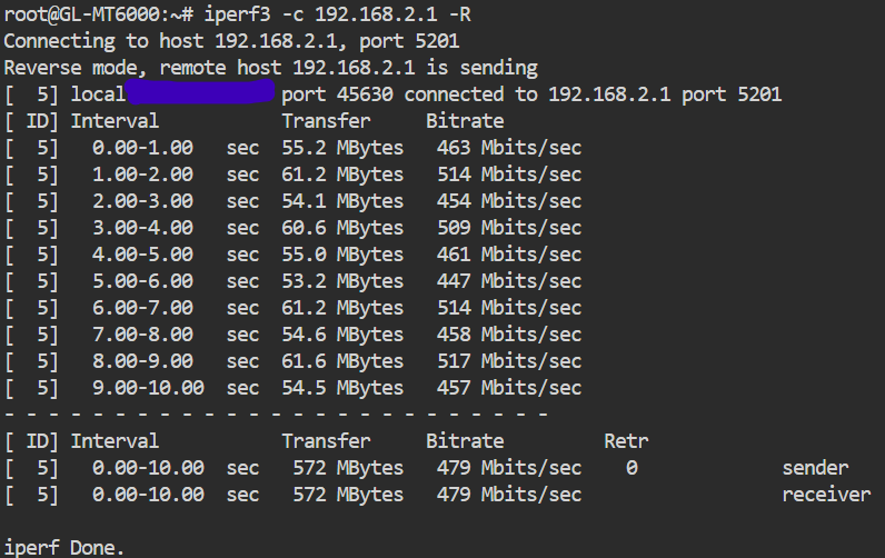 I am trying to measure the throughput available from RM520N-GL to my main router, passing through the RTL8125. I tried installing iperf3 on the RM520N, and it works as expected, but it saturates the CPU at 100% when running the test. So, I do not think these numbers are the real throughput available, but only a lower bound.