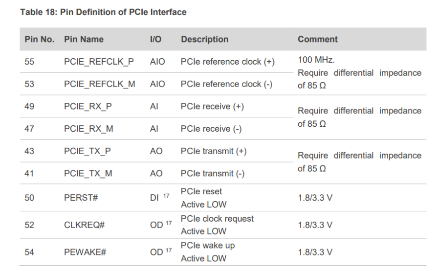 PCIE_RX_P&M and PCIE_TX_P&M are the PCIe (v 3.0 for RM520) Serial Data Output pin,