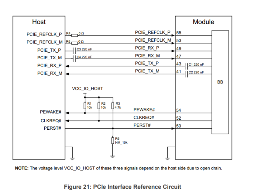 PCIe lanes (two pairs of traces) are the physical link between the PCIe supported host and module.