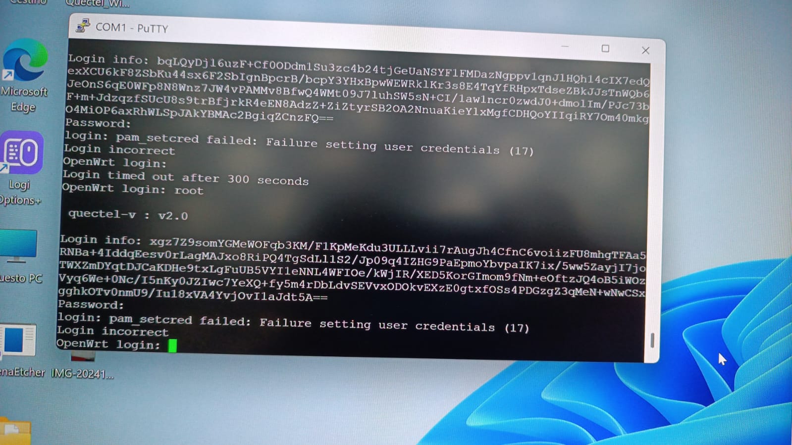 Yesterday I had some problems with the pin contacts but it was impossible to advise you due to messages limitation. Vukasinovic (Quectel Europe-Serbia) kindly help me with the openwrt password but I got many times an impassable error and he suggests me to contact you. Check please the picture I attached.
