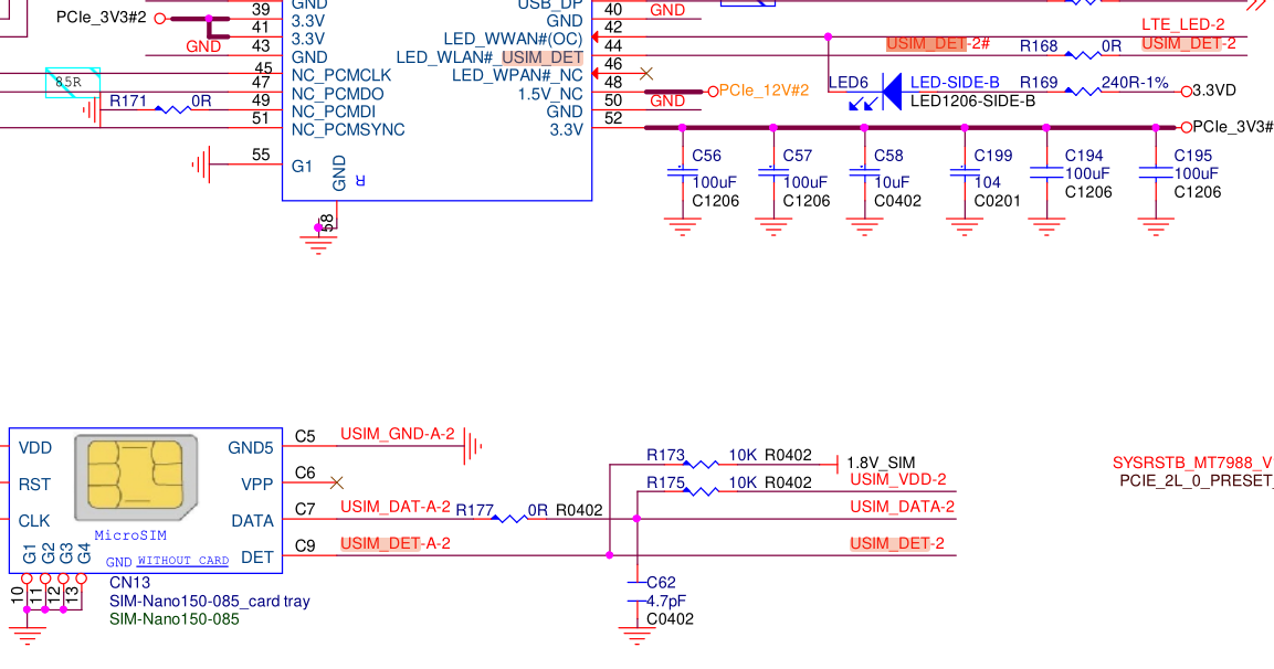 We use a Banana Pi BPI-R4 board and the SIM card detection pins on the mPCIe and M.2 B-key slots are wired.
