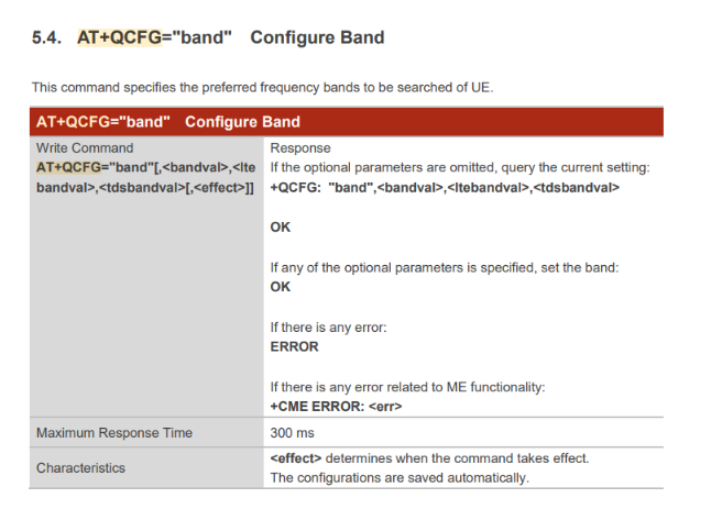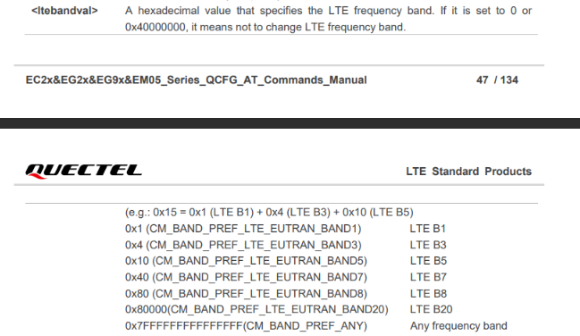 AT+QCFG=“band”,0,800045,0,1